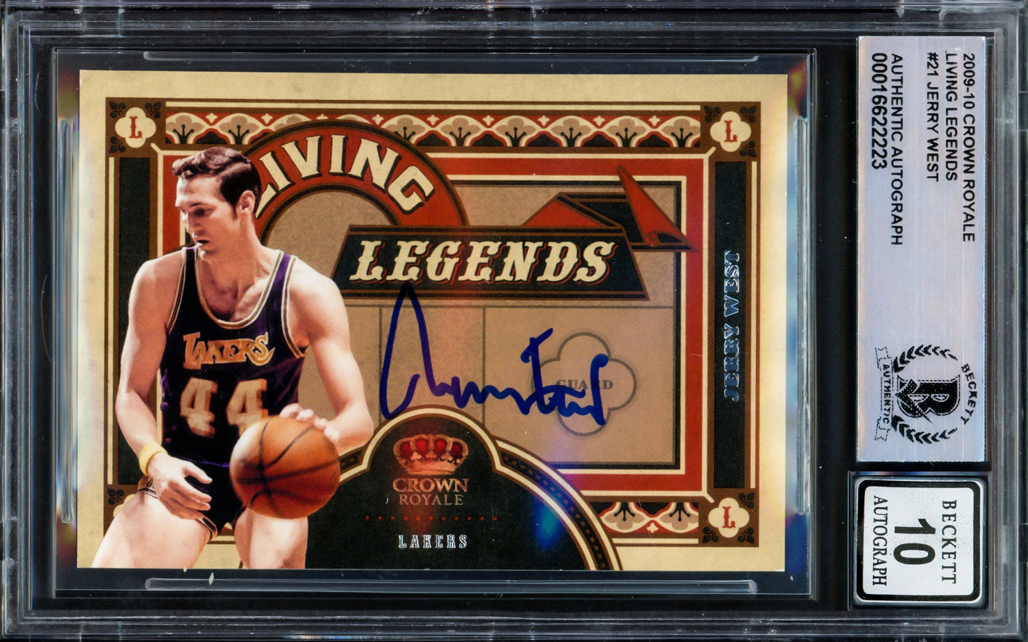 Jerry West Autographed 2009-10 Crown Royale Living Legends Card #21 Card Los Angeles Lakers Auto Grade Gem Mint 10 Beckett BAS Stock #235079