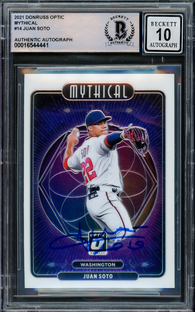 Juan Soto Autographed 2021 Donruss Optic Mythical Card #M14 New York Mets Auto Grade Gem Mint 10 Beckett BAS #16544441