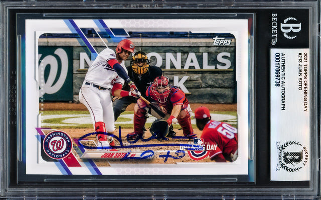 Juan Soto Autographed 2021 Topps Opening Day Card #213 New York Mets Beckett BAS #17069738