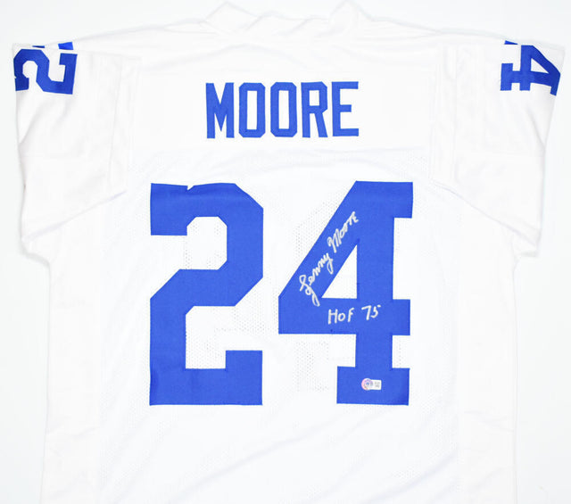 Lenny Moore Autographed White Pro Style Jersey w/HOF-Beckett W Hologram *Silver is backordered and will ship as soon as it is back in stock.