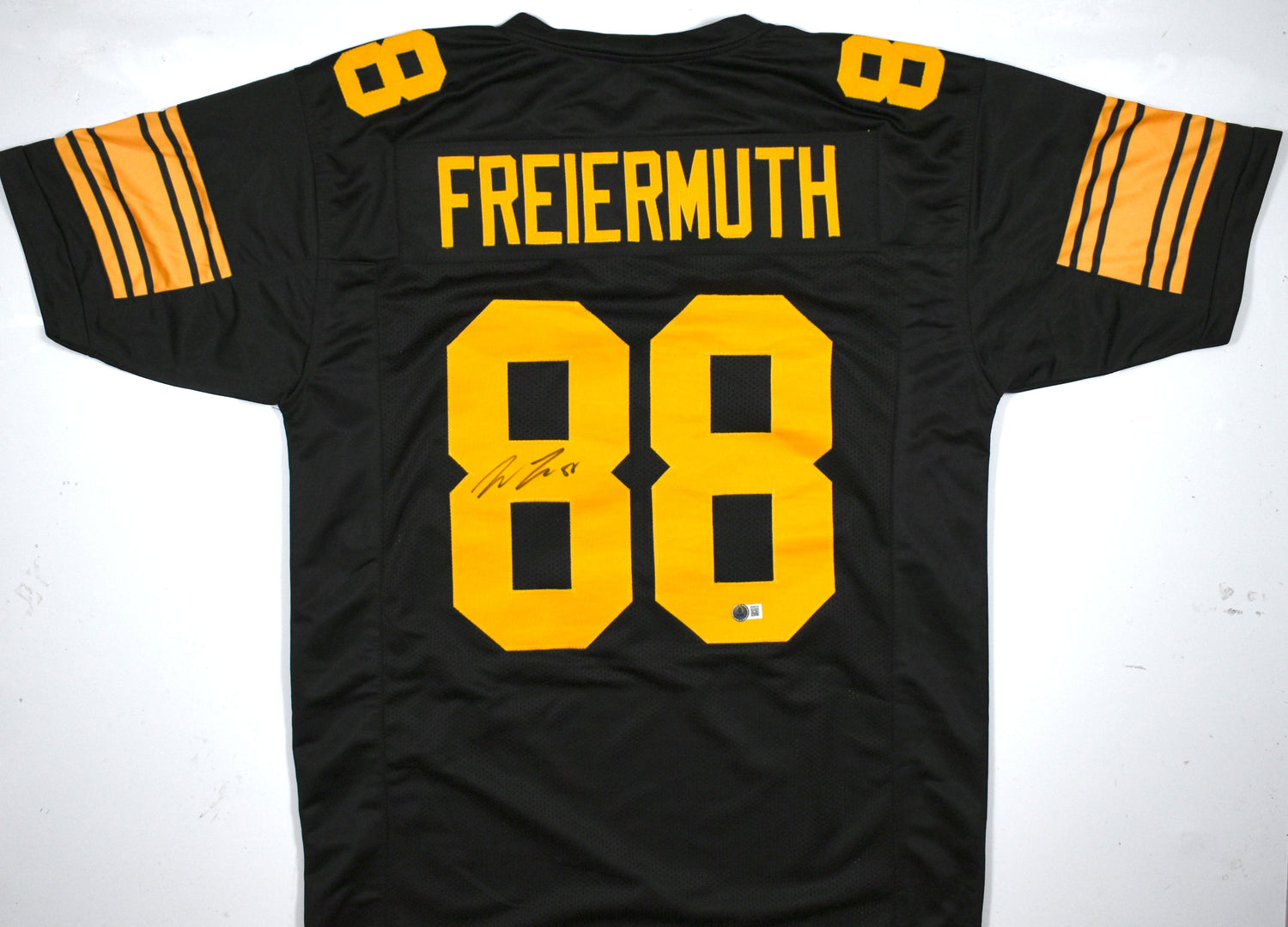 Pat Freiermuth Autographed Black Yellow Pro Style Jersey- Beckett W Hologram *L8 is backordered and will ship as soon as it is back in stock.