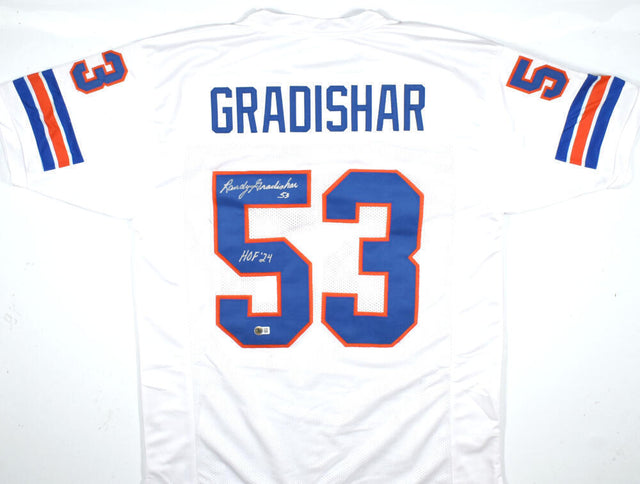 Own a piece of football history with this hand-signed Randy Gradishar autographed jersey, inscribed with HOF 24 to commemorate his induction into the Pro Football Hall of Fame. This custom-made, pro-style jersey is perfect for memorabilia collectors and Denver Broncos fans alike.