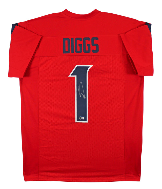 Own a piece of NFL history with this Autographed Red Pro Style Jersey, personally signed by Stefon Diggs of the Houston Texans. This exclusive collectible is a must-have for dedicated fans and memorabilia collectors alike. Authenticated by Beckett Authentication Services (BAS), ensuring 100% legitimacy, this jersey is a standout addition to any collection.