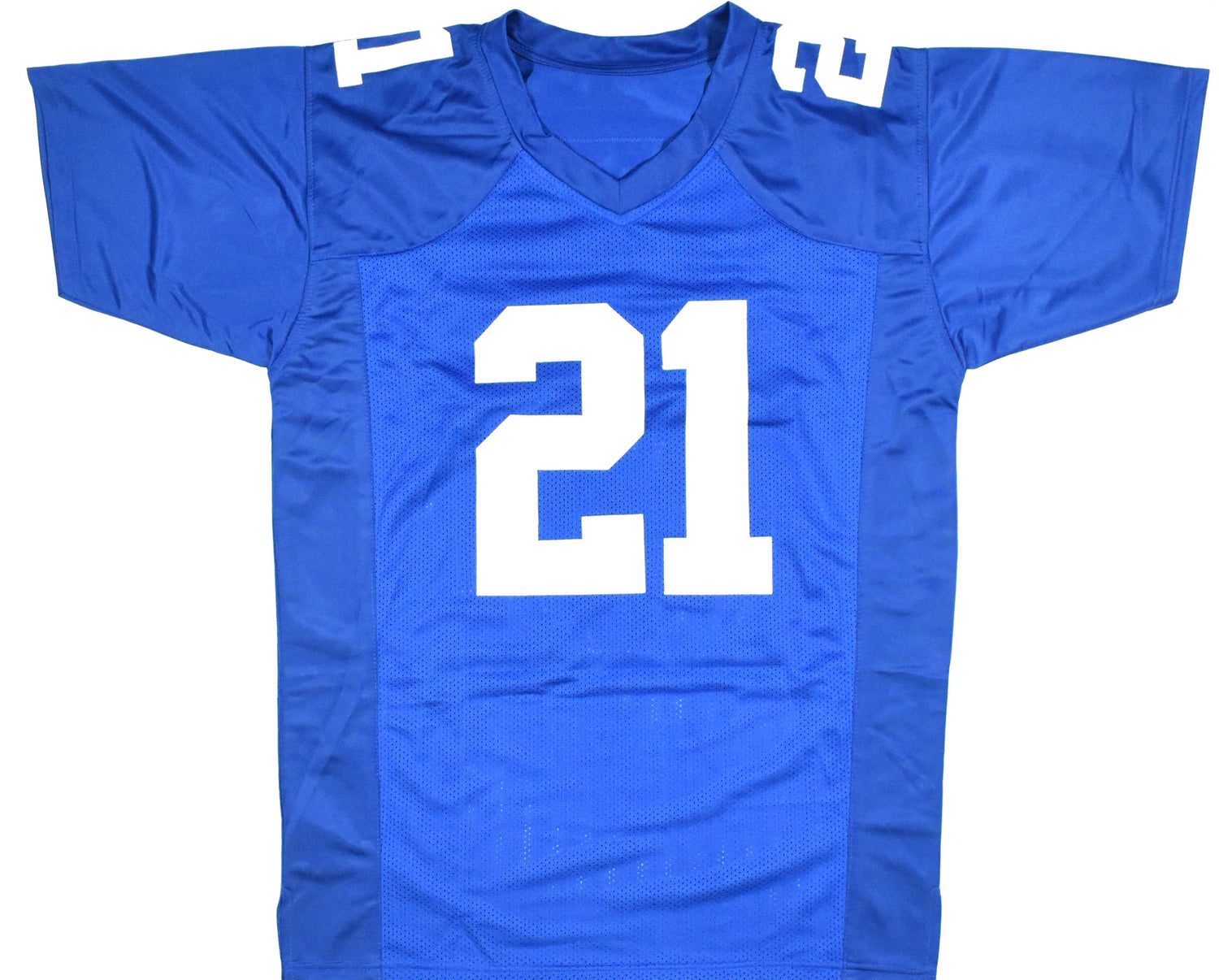 Celebrate the legacy of one of the most beloved New York Giants players with this Tiki Barber hand-signed custom jersey. A must-have for Giants fans and football memorabilia collectors, this display-worthy piece pays tribute to Barber’s incredible career as the franchise’s all-time leading rusher. This is not an NFL-licensed jersey—it’s a high-quality, custom-made authentic style jersey designed for display and signature preservation.