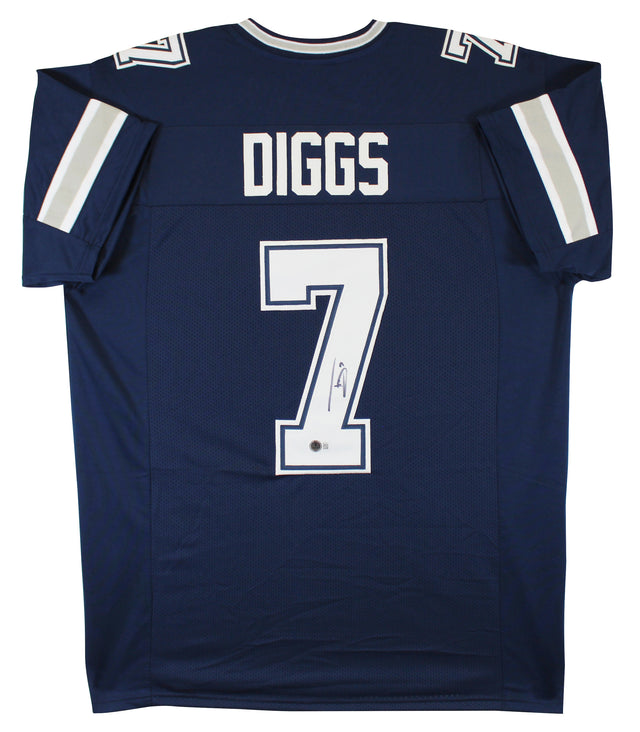 Elevate your Dallas Cowboys memorabilia collection with this Autographed Navy Pro Style Jersey, personally signed by Trevon Diggs. A standout cornerback, Diggs has made a name for himself with his exceptional playmaking abilities, making this signed jersey a must-have for devoted fans and collectors alike.