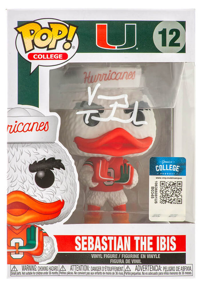 Vinny Testaverde Signed Miami Hurricanes NCAA 'Sebastian The Ibis' Mascot Funko Pop Doll #12