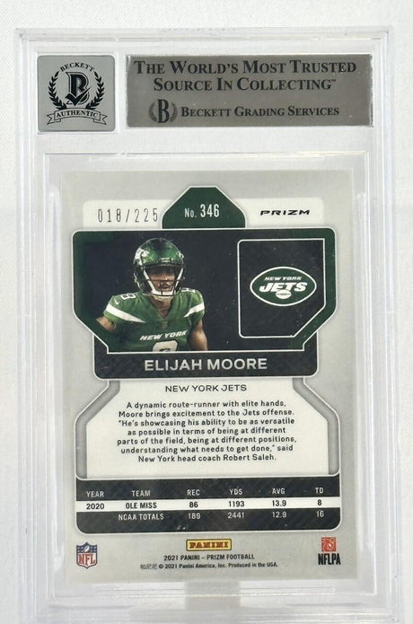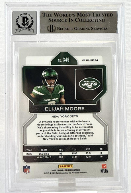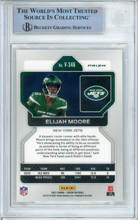 2021 Panini Prizm Silver Rookie Variations #346 Elijah Moore Jets BGS Auto 10