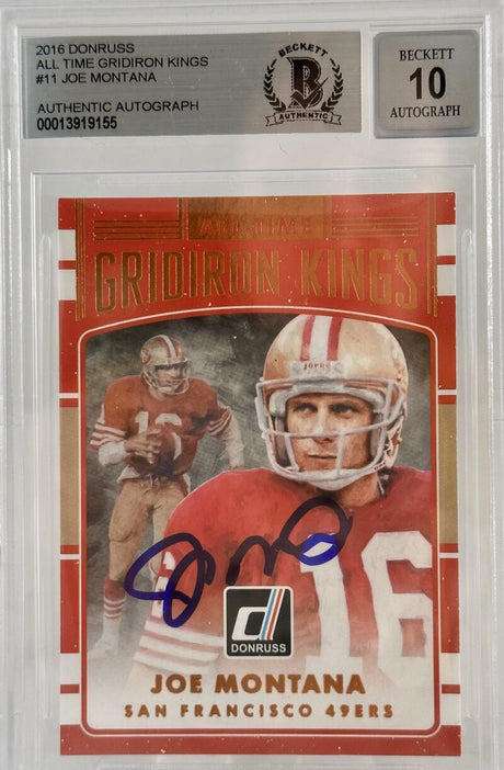 2016 Donruss All Time Gridiron Kings #11 Joe Montana Auto 49ers BGS Autograph 10