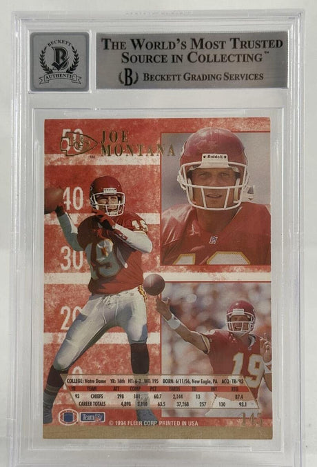 1994 Playoff #1 Joe Montana Auto Kansas City Chiefs BGS Autograph 10