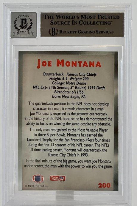 1993 Topps #200 Joe Montana Auto Kansas City Chiefs BGS Autograph 10