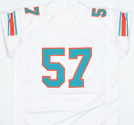 Dwight Stephenson Autographed White Pro Style Jersey w/ HOF - Prova *Silver
