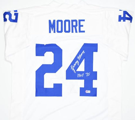 Lenny Moore Autographed White Pro Style Jersey w/HOF-Beckett W Hologram *Silver