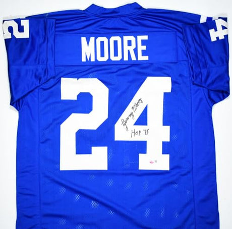 Lenny Moore Autographed Blue Pro Style Jersey w/HOF-Beckett W Hologram *Black*R2