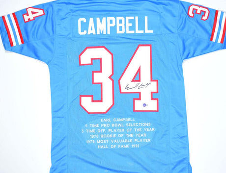Earl Campbell Autographed Blue Stat Pro Style Jersey- Beckett W Hologram *Black