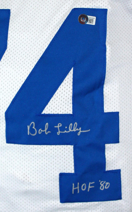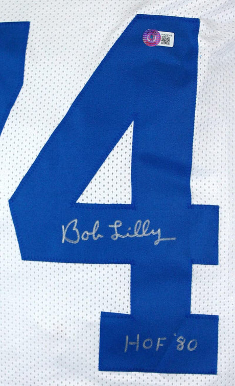 Bob Lilly Autographed White Pro Style Jersey w/HOF-Beckett W Hologram *Silver