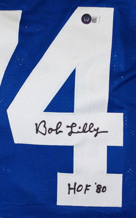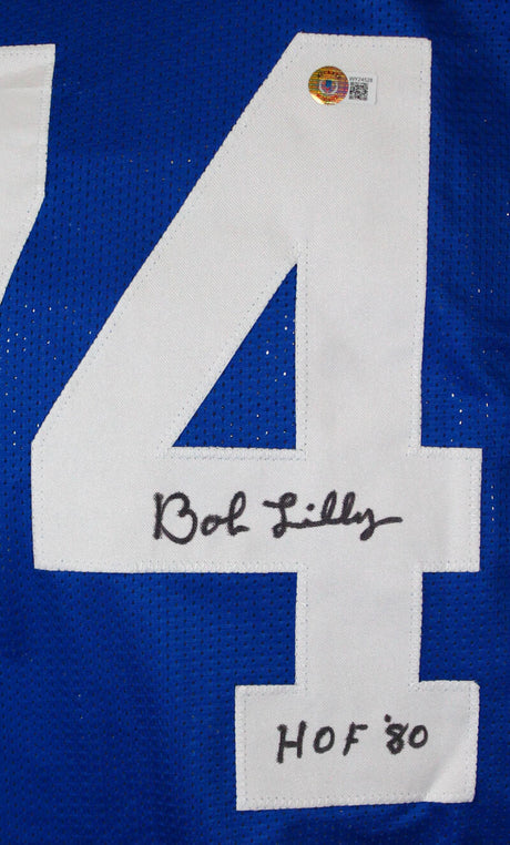 Bob Lilly Autographed Blue Pro Style Jersey w/HOF-Beckett W Hologram *Black