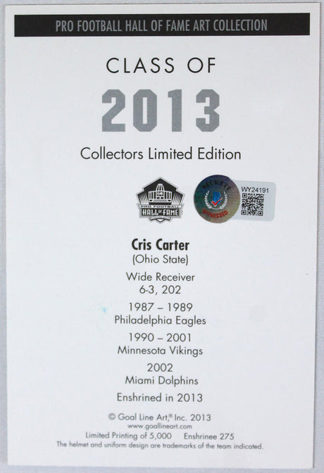 Cris Carter Autographed Minnesota Vikings Goal Line Art Card-Beckett W Hologram