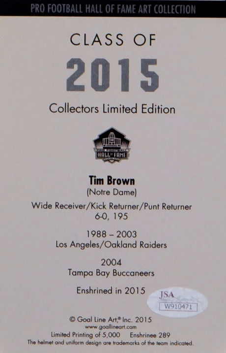 Tim Brown Autographed Oakland Raiders Goal Line Art Card With HOF- JSA W Auth