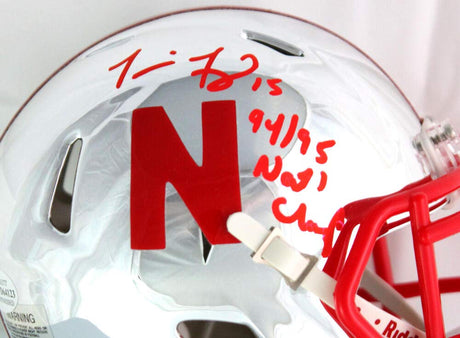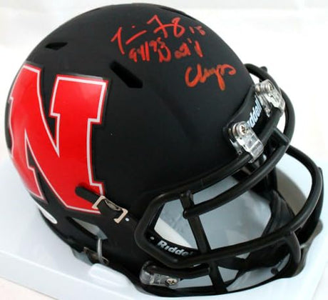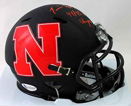 Tommie Frazier Sugned Nebraska Chrome Mini Helmet w/ Insc- Beckett W Auth *Red
