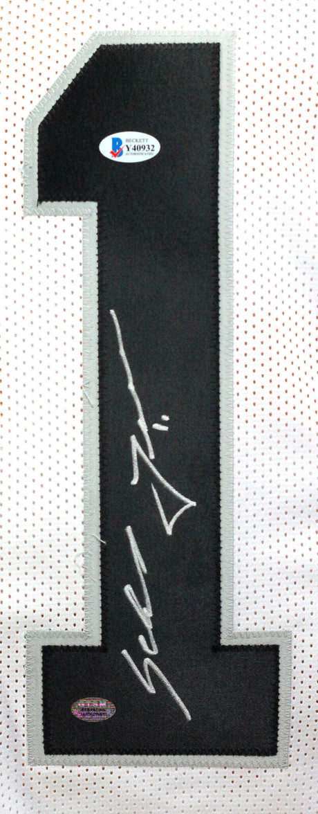 Sebastian Janikowski Autographed White Pro Style Jersey- Beckett Auth *R1