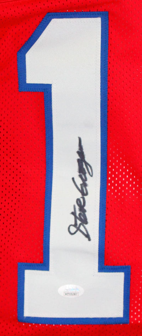 Steve Grogan Autographed Red Pro Style Jersey -JSA W *Black