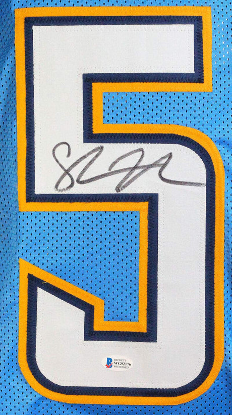 Shawne Merriman Autographed Lt. Blue Pro Style Jersey - Beckett W Auth