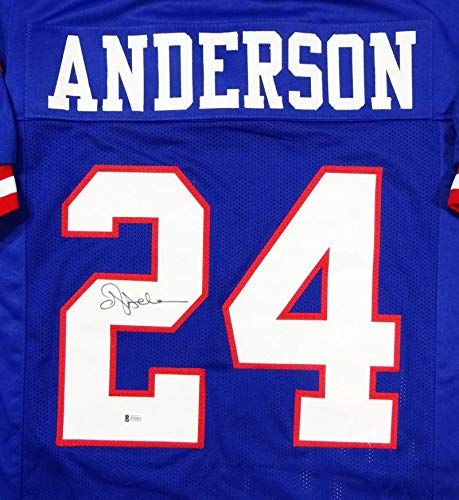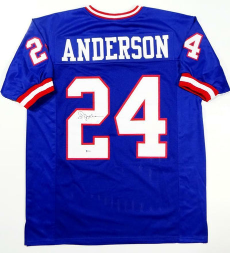 Ottis Anderson Autographed Blue Pro Style Jersey - Beckett Auth *2