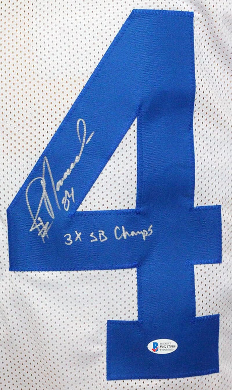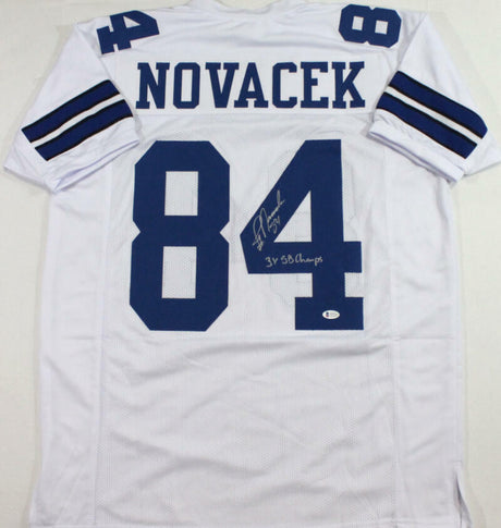 Jay Novacek Autographed White Pro Style Jersey w/ 3x SB Champs- Beckett W*Silver