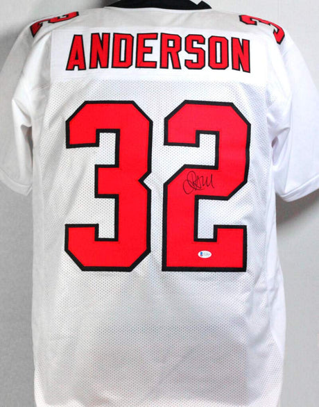 Jamal Anderson Autographed White Pro Style Jersey- Beckett W *Black