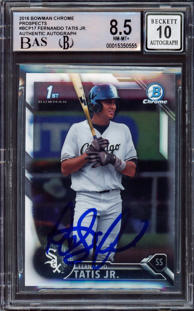 Fernando Tatis Jr. Autographed 2016 Bowman Chrome Prospect Rookie Card #BCP17 San Diego Padres BGS 8.5 Auto Grade Gem Mint 10 Beckett BAS Stock #212270
