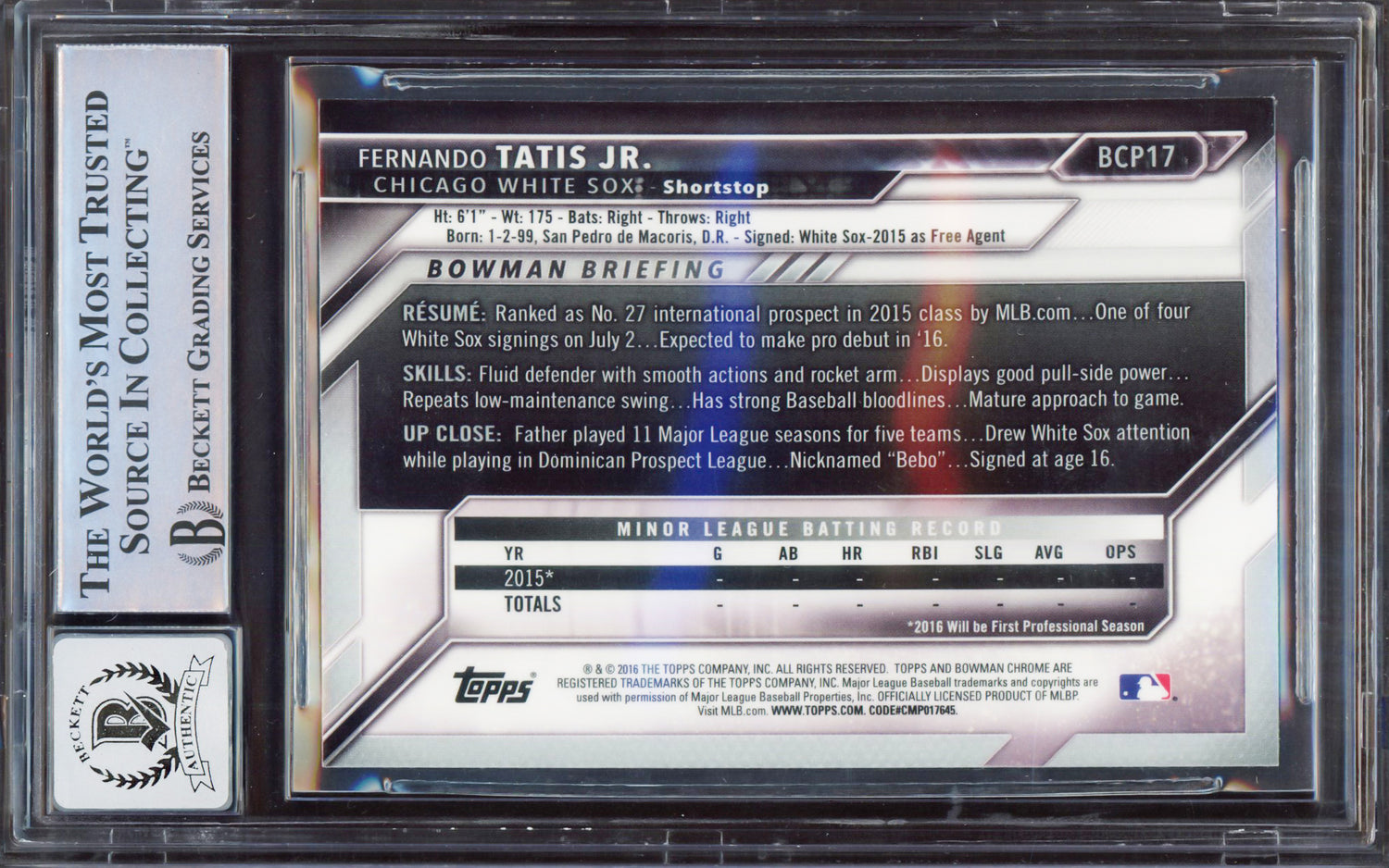 Fernando Tatis Jr. Autographed 2016 Bowman Chrome Prospect Rookie Card #BCP17 San Diego Padres BGS 9 Auto Grade Gem Mint 10 Beckett BAS #15350399