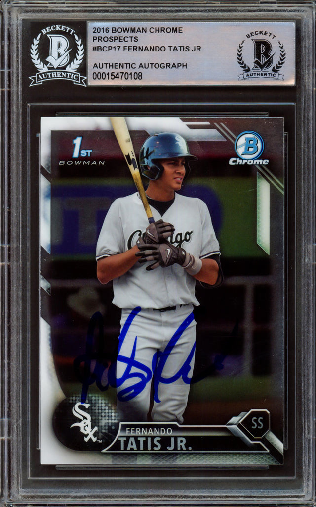 Fernando Tatis Jr. Autographed 2016 Bowman Chrome Prospects Rookie Card #BCP17 San Diego Padres Beckett BAS Stock #213281