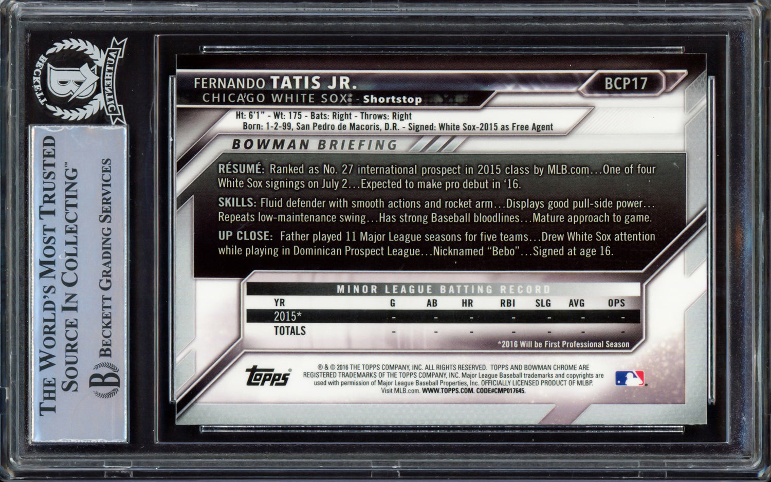 Fernando Tatis Jr. Autographed 2016 Bowman Chrome Prospects Rookie Card #BCP17 San Diego Padres (Bubbling) Beckett BAS #15470105