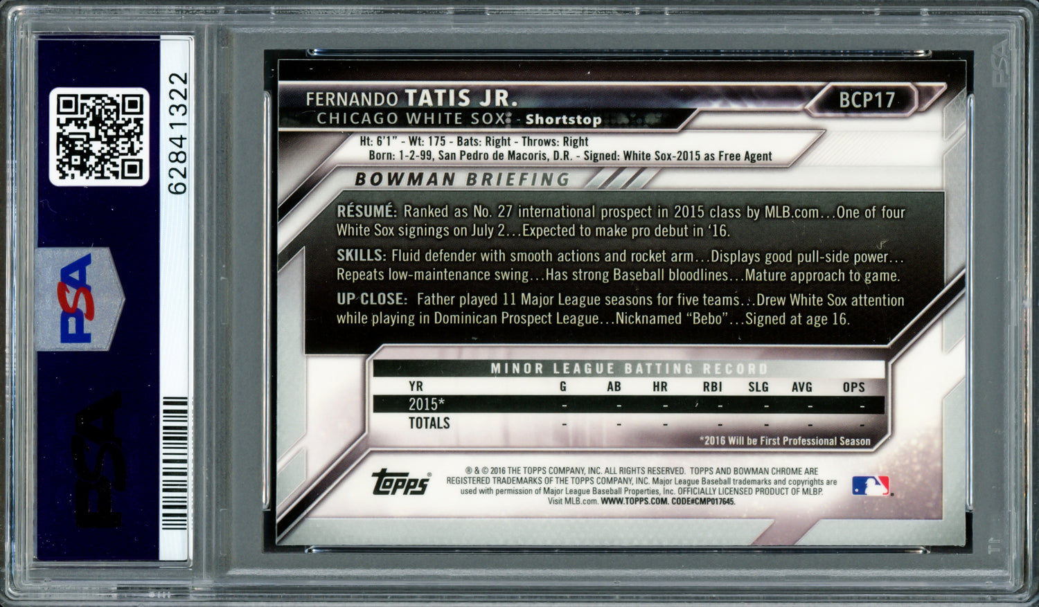 Fernando Tatis Jr. Autographed 2016 Bowman Chrome Prospects Rookie Card #BCP17 San Diego Padres PSA 5 Auto Grade Gem Mint 10 PSA/DNA #62841322