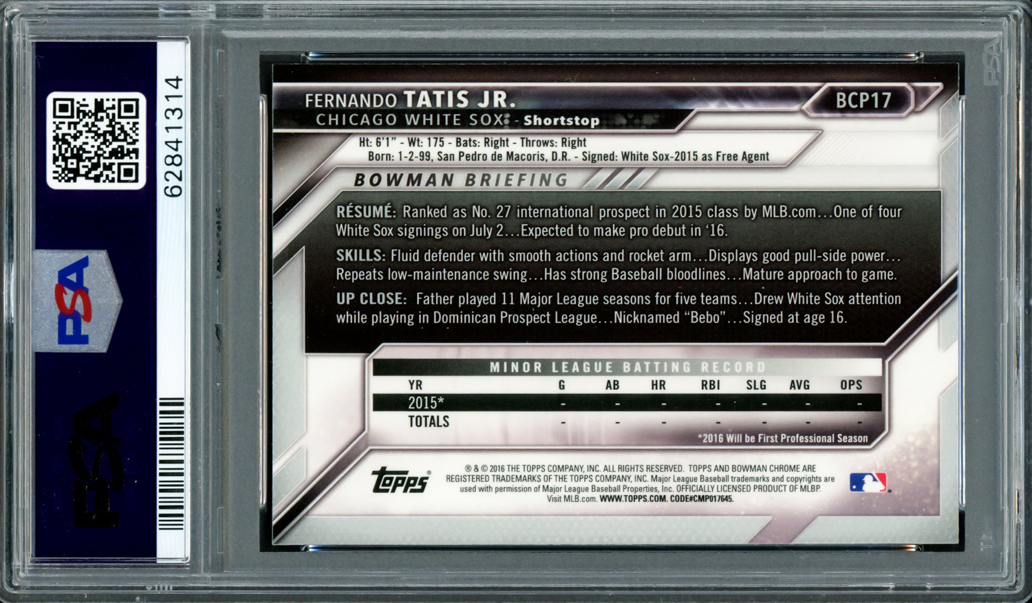 - Card Set: 2016 Bowman Chrome Prospects Rookie Card #BCP17