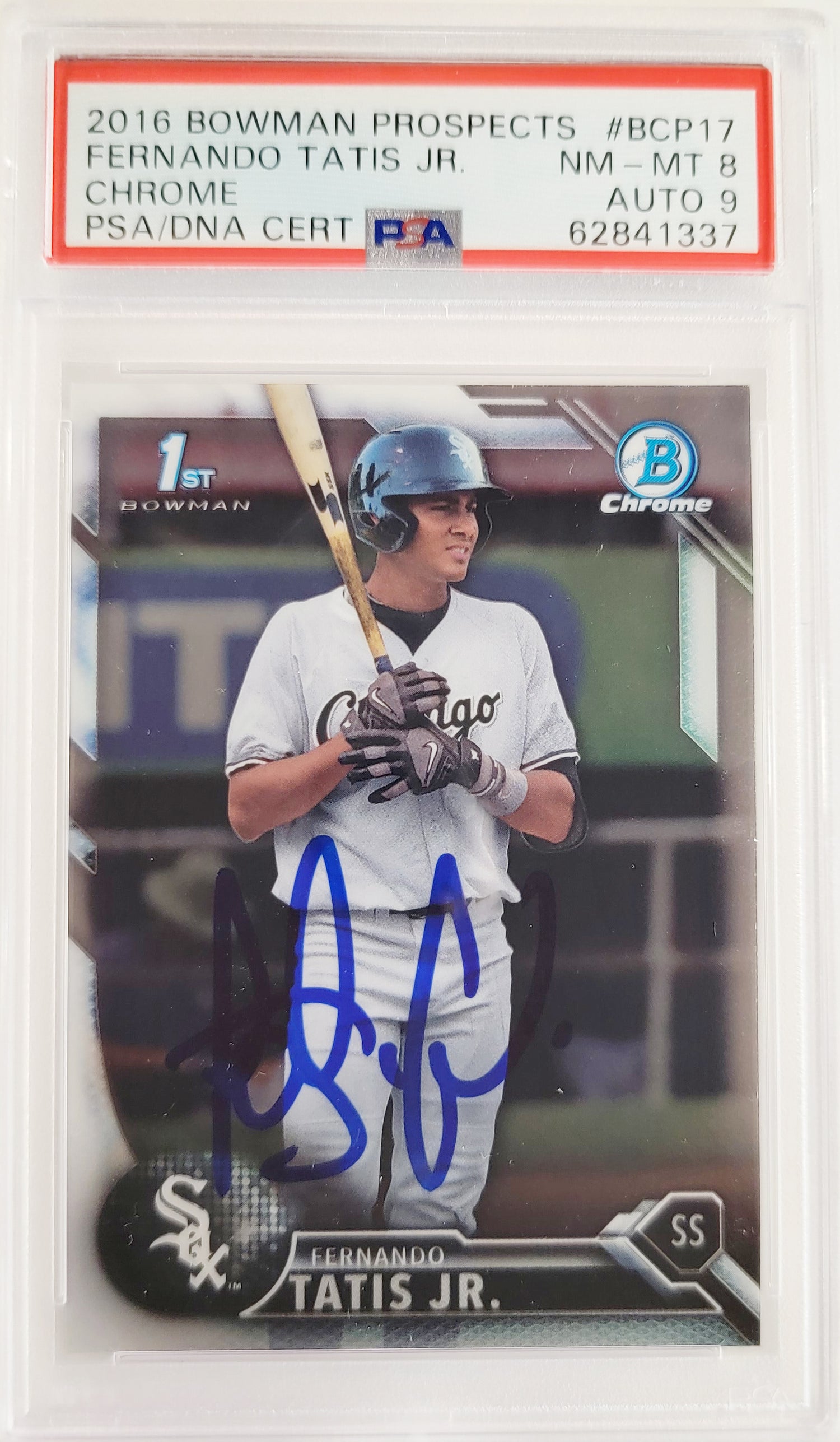 Fernando Tatis Jr. Autographed 2016 Bowman Chrome Prospects Rookie Card #BCP17 San Diego Padres PSA 8 Auto Grade Mint 9 PSA/DNA Stock #208581