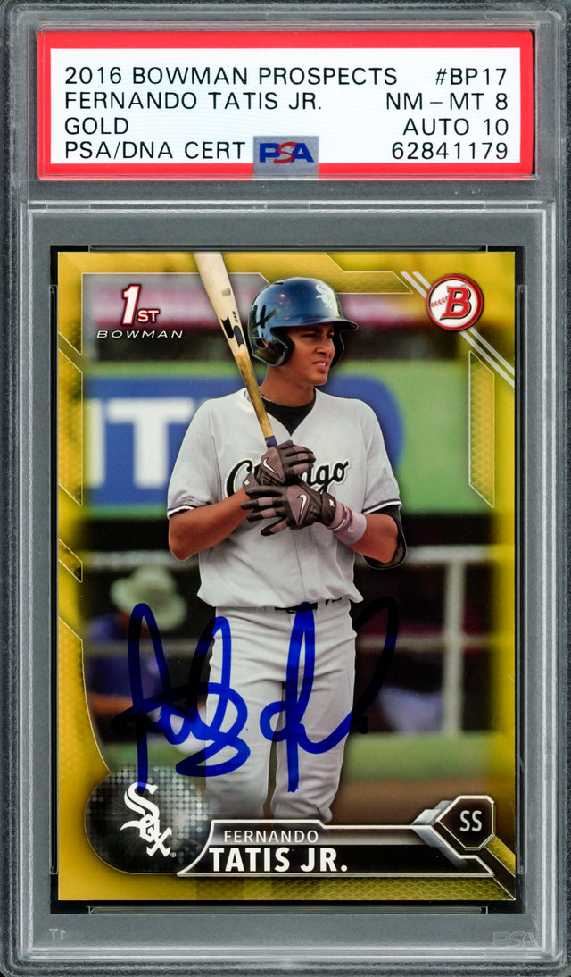 Fernando Tatis Jr. Autographed 2016 Bowman Prospects Gold Rookie Card #BP17 San Diego Padres PSA 8 Auto Grade Gem Mint 10 #22/50 PSA/DNA #62841179