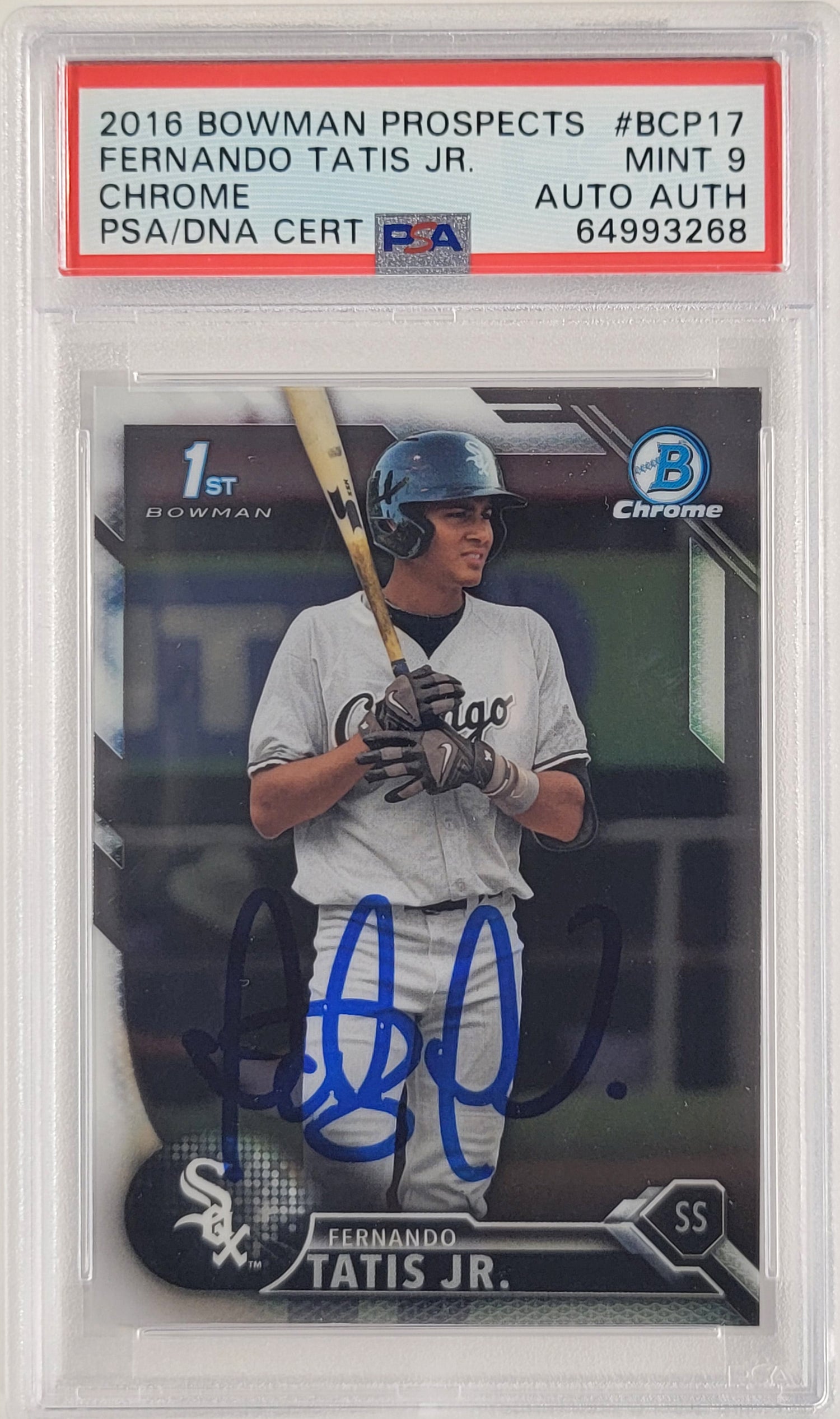 Fernando Tatis Jr. Autographed 2016 Bowman Chrome Prospects Rookie Card #BCP17 San Diego Padres PSA 9 PSA/DNA #64993268