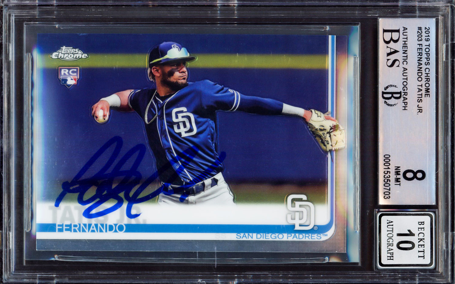 Fernando Tatis Jr. Autographed 2019 Topps Chrome Rookie Card #203 San Diego Padres BGS 8 Auto Grade Gem Mint 10 Beckett BAS #15350703