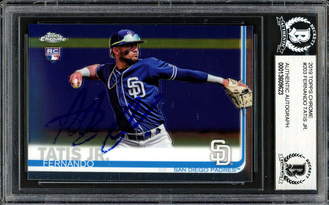 Fernando Tatis Jr. Autographed 2019 Topps Chrome Rookie Card #203 San Diego Padres (Bubbling) Beckett BAS #13609623