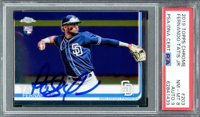 Fernando Tatis Jr. Autographed 2019 Topps Chrome Rookie Card #203 San Diego Padres PSA 8 Auto Grade Mint 9 PSA/DNA #62841439