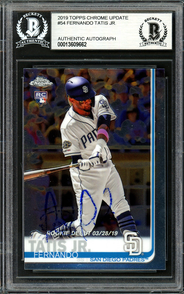 Fernando Tatis Jr. Autographed 2019 Topps Chrome Update Rookie Card #54 San Diego Padres (Bubbling) Beckett BAS #13609662