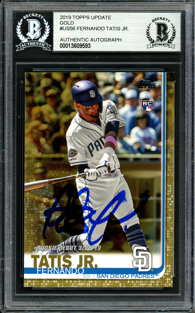 Fernando Tatis Jr. Autographed 2019 Topps Update Gold Rookie Card #US56 San Diego Padres #1641/2019 (Smudged) Beckett BAS #13609593