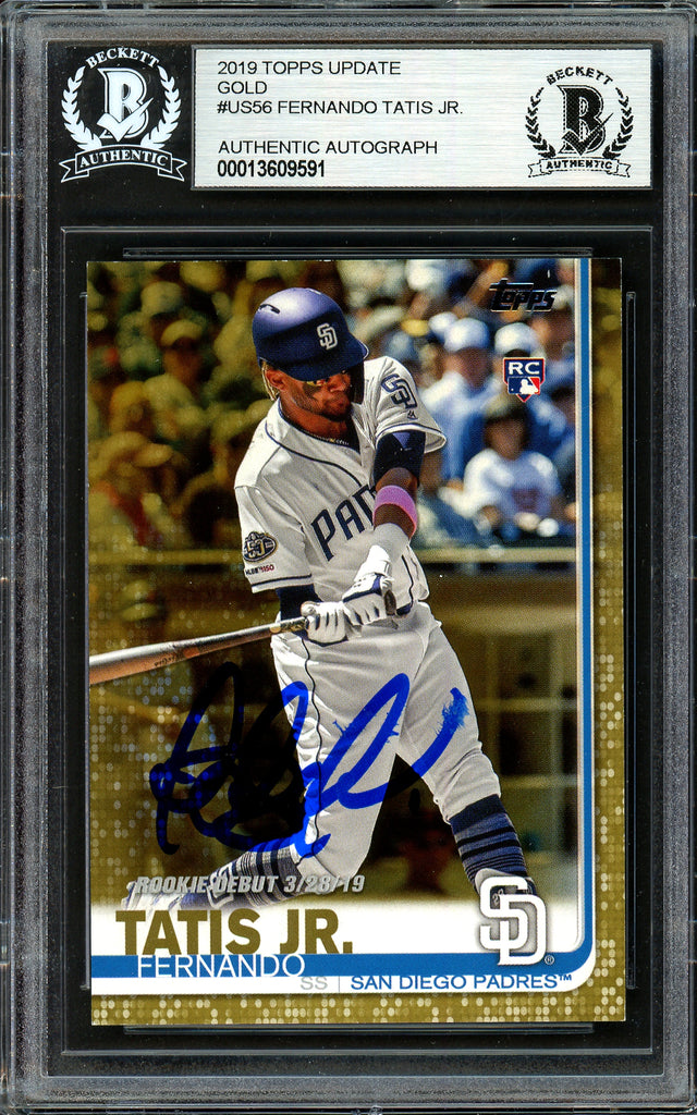 Fernando Tatis Jr. Autographed 2019 Topps Update Gold Rookie Card #US56 San Diego Padres #773/2019 (Smudged) Beckett BAS #13609591