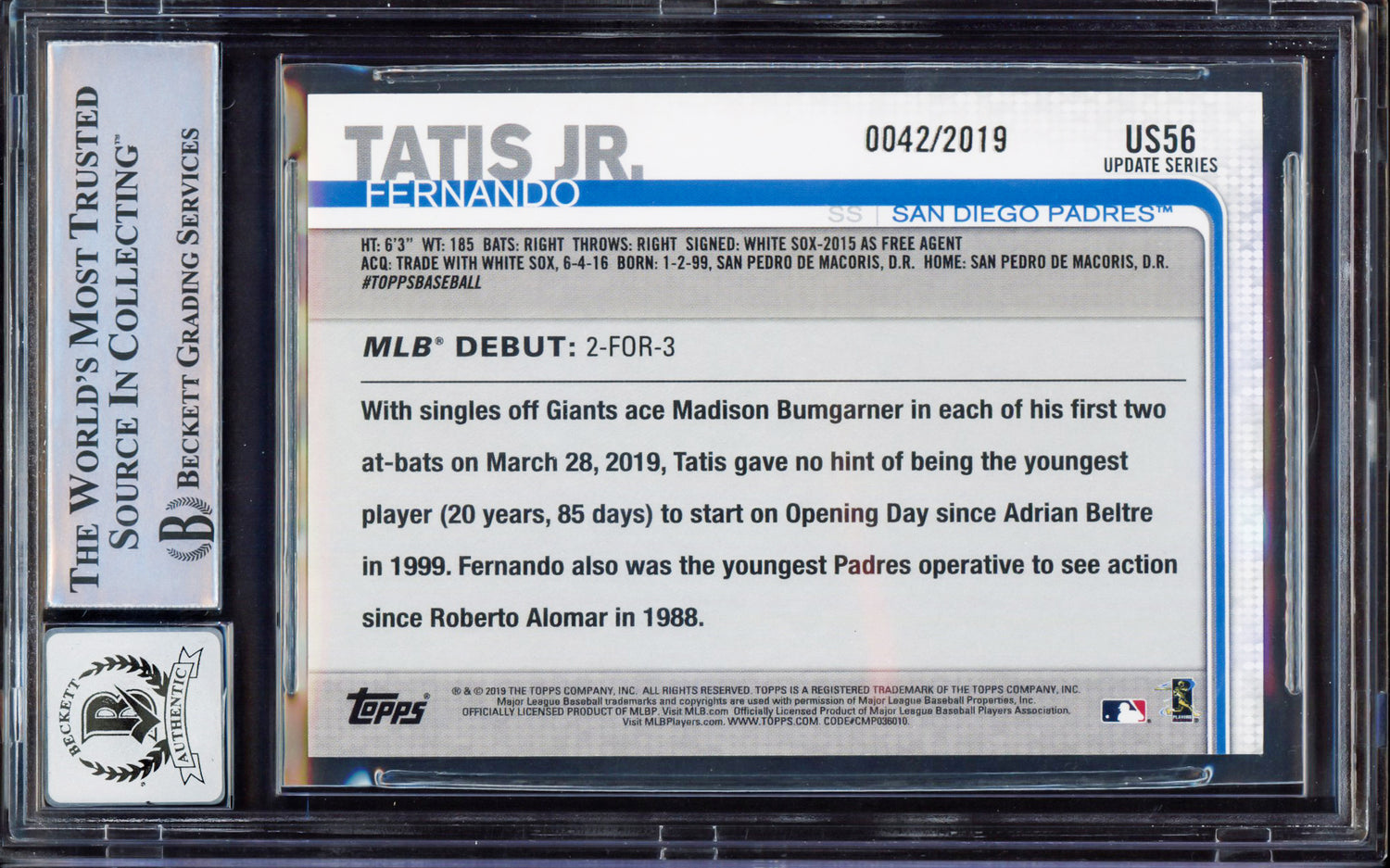 Fernando Tatis Jr. Autographed 2019 Topps Update Gold Rookie Card #US56 San Diego Padres BGS 8 Auto Grade Gem Mint 10 Beckett BAS #15350685