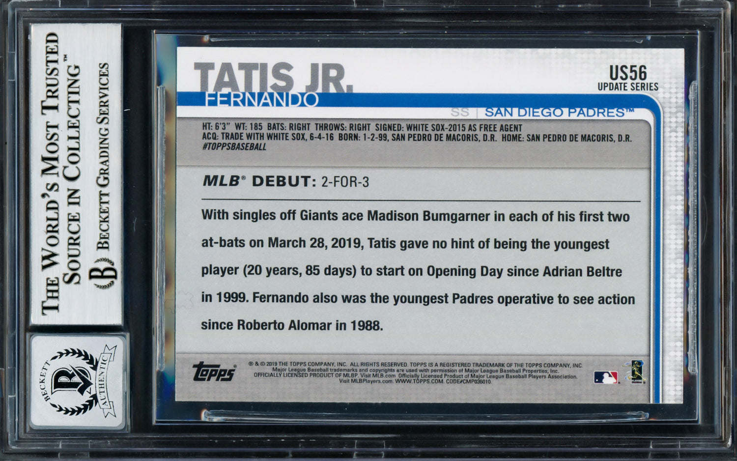Fernando Tatis Jr. Autographed 2019 Topps Update Rookie Card #US56 San Diego Padres Auto Grade Gem Mint 10 Beckett BAS Stock #202922