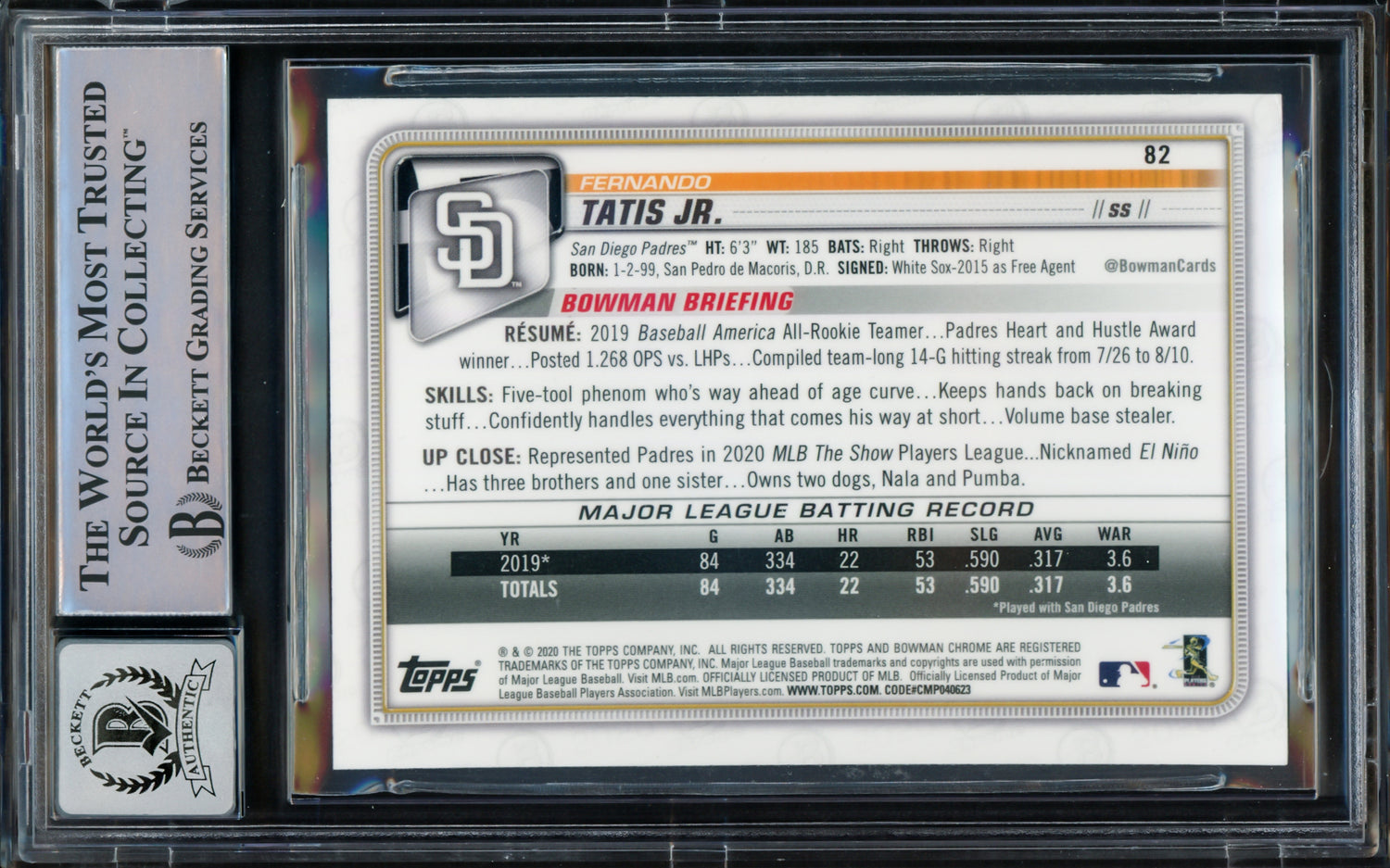 Fernando Tatis Jr. Autographed 2020 Bowman Chrome Card #82 San Diego Padres Auto Grade Gem Mint 10 Beckett BAS #15774538
