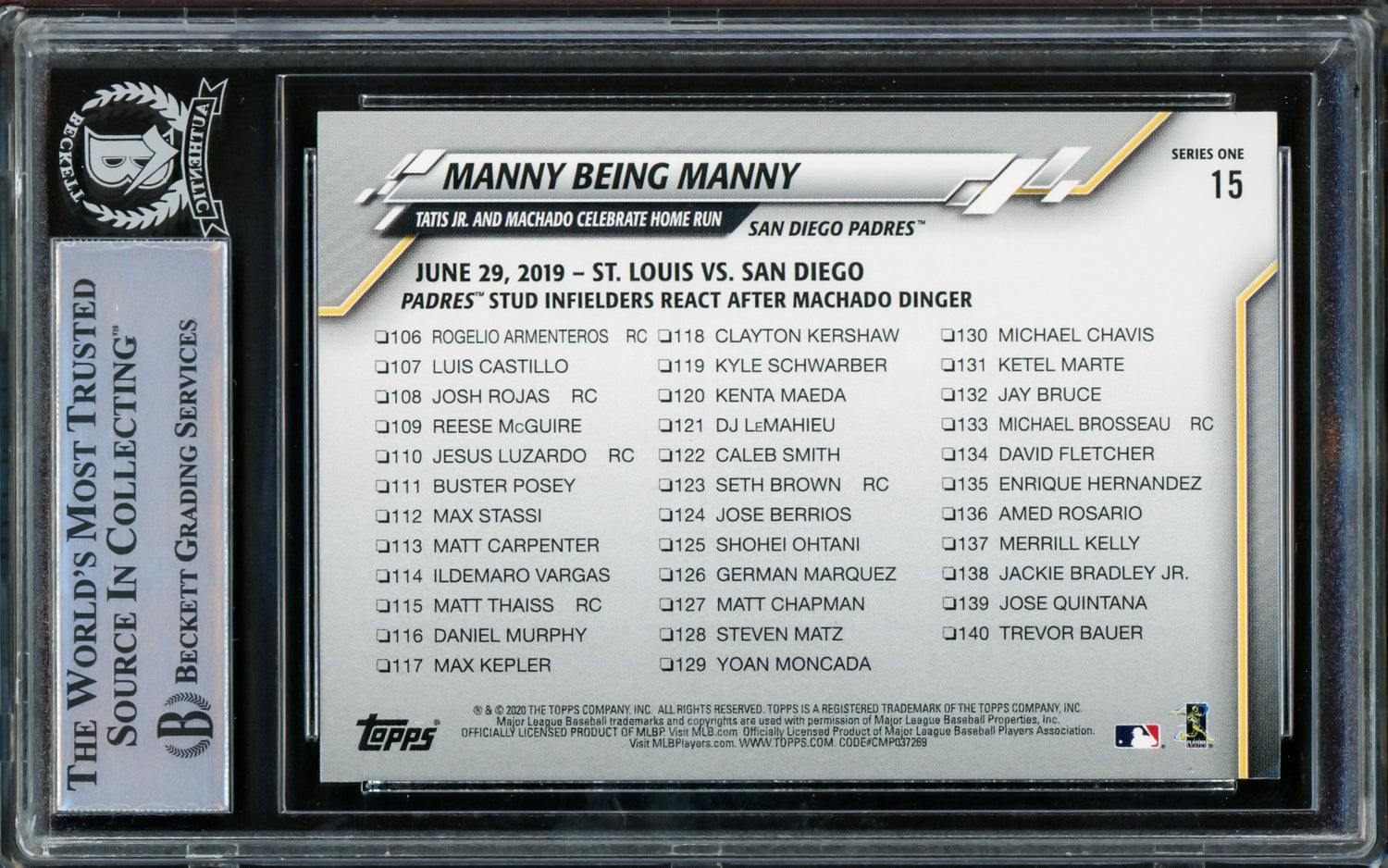 • Official 2020 Topps Card #15 featuring Fernando Tatis Jr.