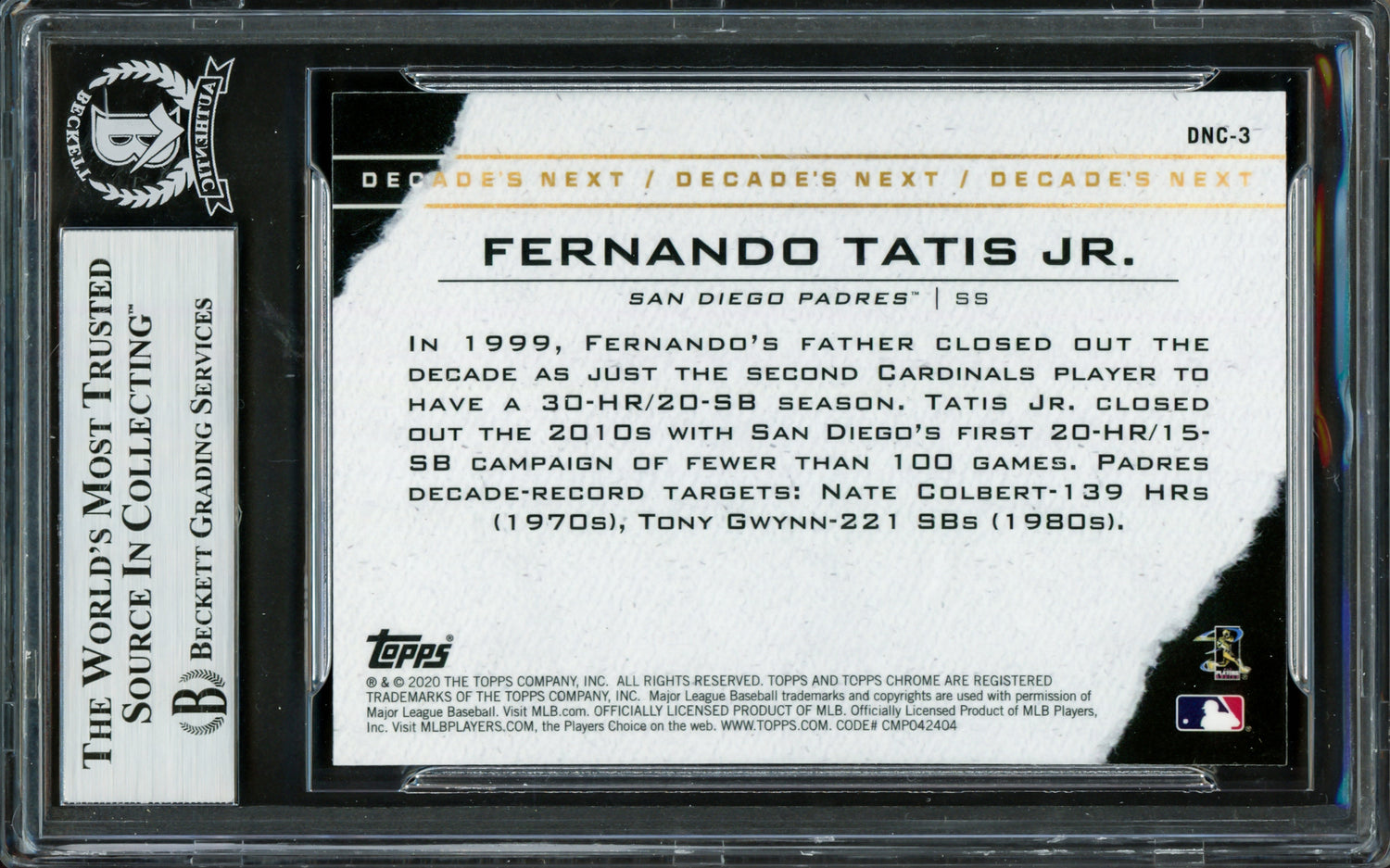 Fernando Tatis Jr. Autographed 2020 Topps Chrome Decades Next Card #DNC-3 San Diego Padres Beckett BAS #16705155