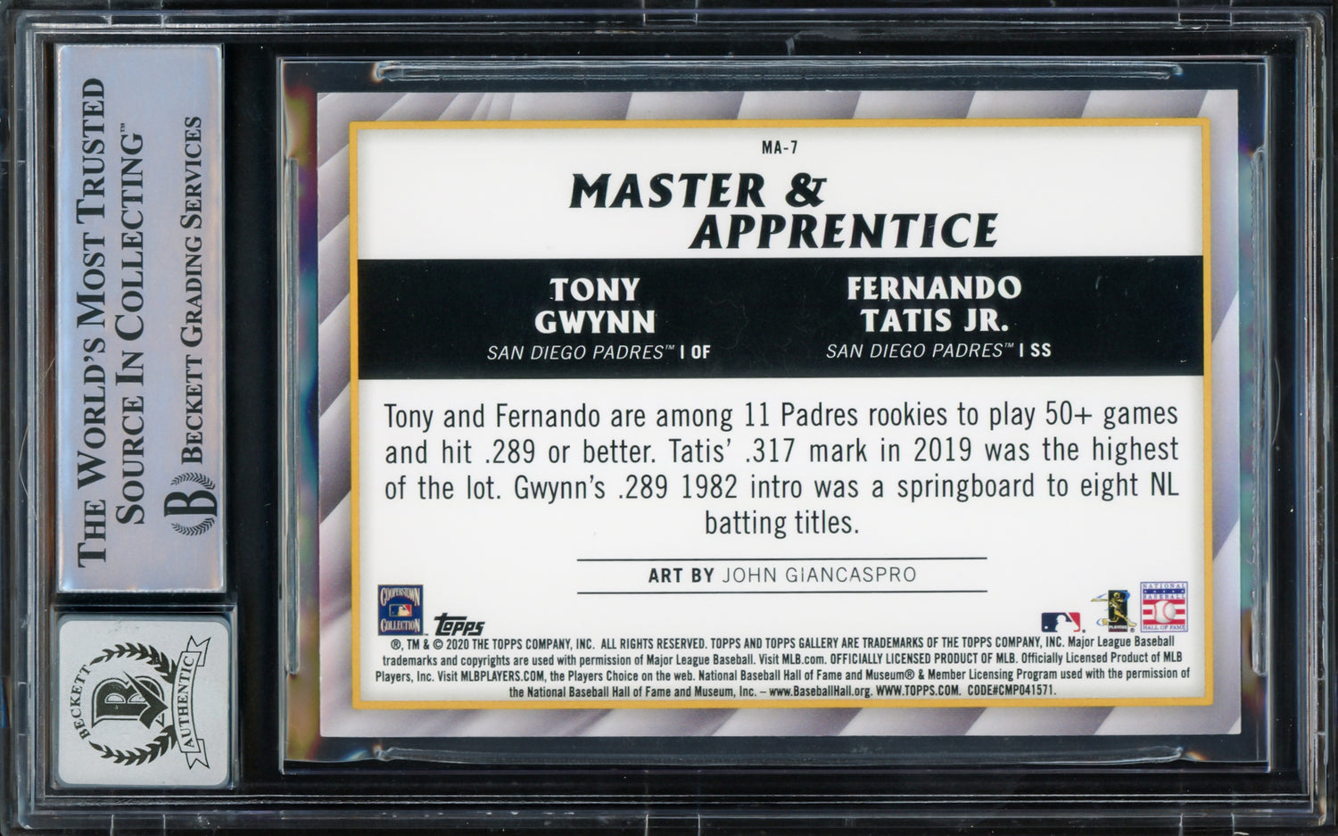 Fernando Tatis Jr. Autographed 2020 Topps Gallery Master & Apprentice Card #MA-7 San Diego Padres Auto Grade Gem Mint 10 Beckett BAS #15774882